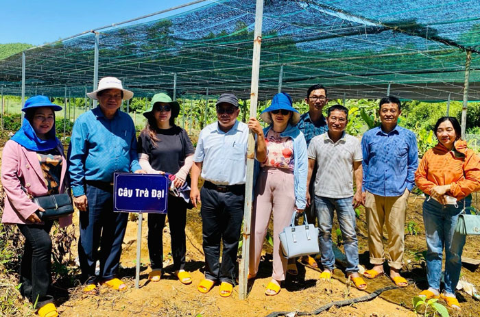 Giám đốc Sở Khoa học - Công nghệ Bình Định Lê Công Nhường (thứ 2 từ trái sang) trong chuyến khảo sát mô hình nuôi heo thảo dược ở Bảo Châu Hoài Ân. Ảnh: Kim Sơn.
